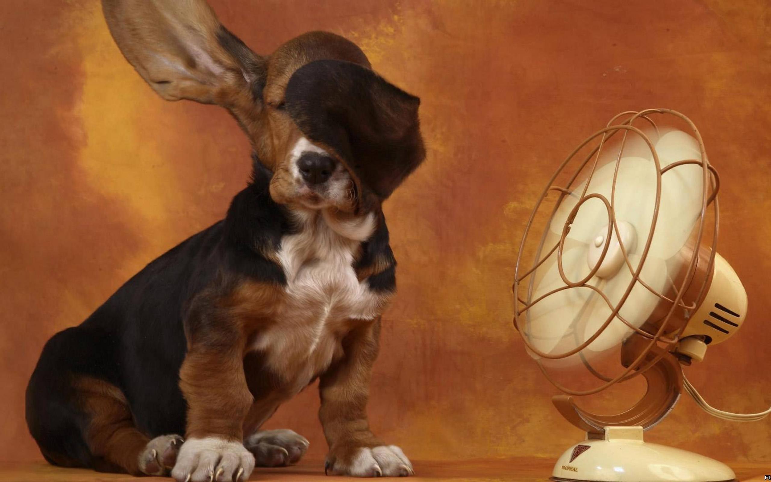 Wallpaper Spaniel dog with fan