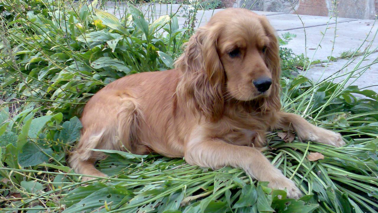 Wallpaper American cocker spaniel lying on the grass