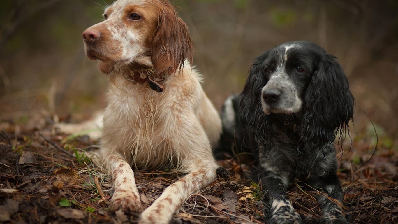 Wallpaper A pair of spaniels on the hunt