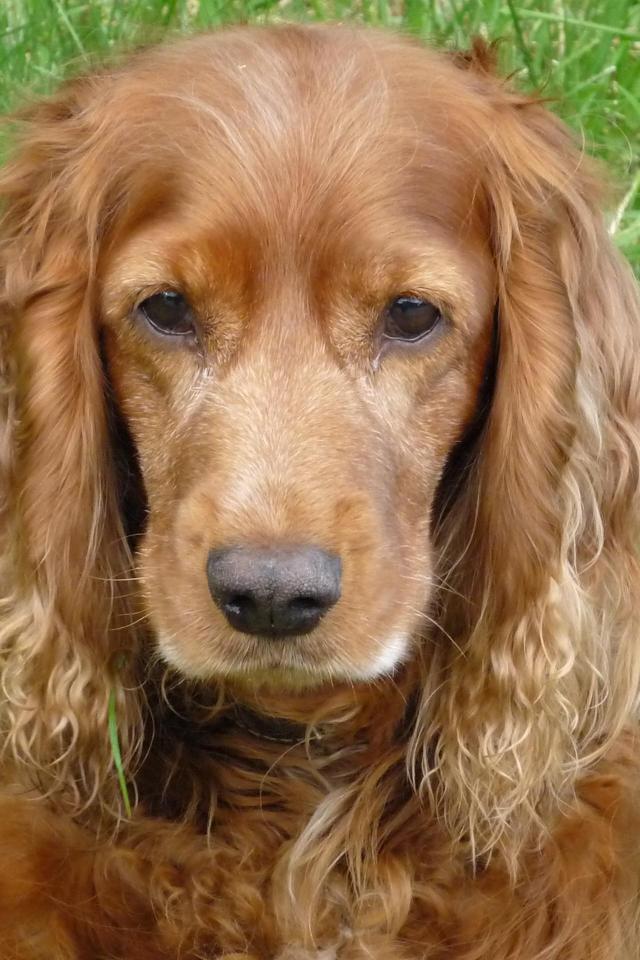 » Wallpaper Sad spaniel in the grass