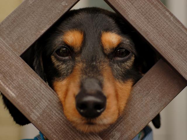 » Wallpaper Dachshund looking through the bars