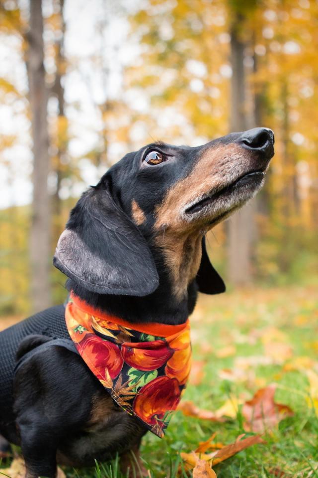 Wallpaper Dachshund in the autumn forest