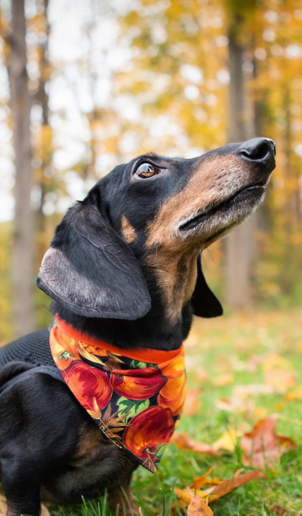 Wallpaper Dachshund in the autumn forest