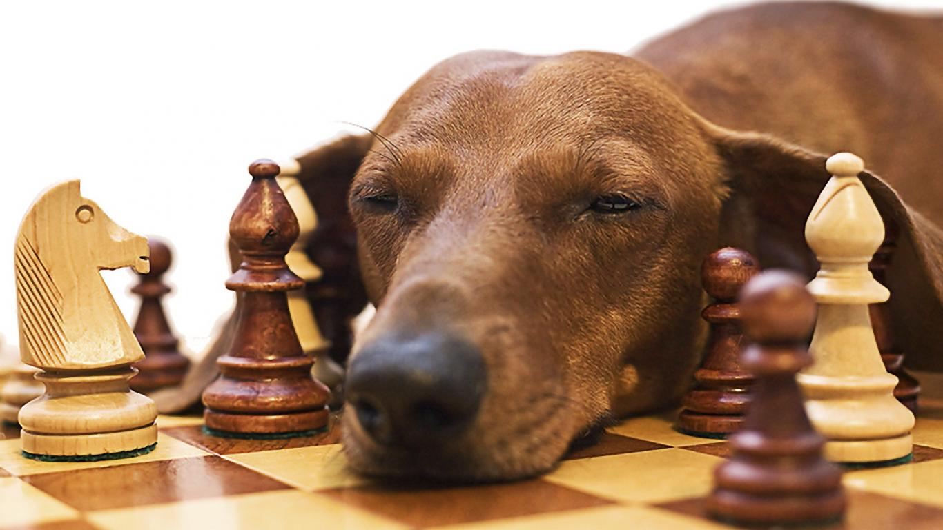 Wallpaper Dachshund sleeps of chess