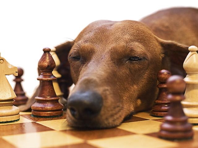 Wallpaper Dachshund sleeps of chess