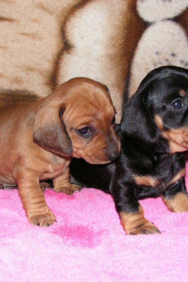 Wallpaper Dachshund puppy in a blue jumpsuit
