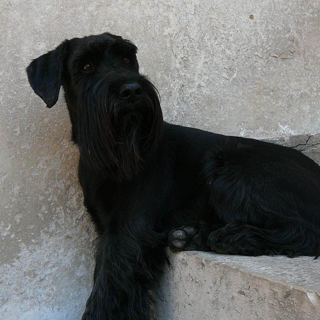 » Wallpaper Schnauzer sitting on the stairs