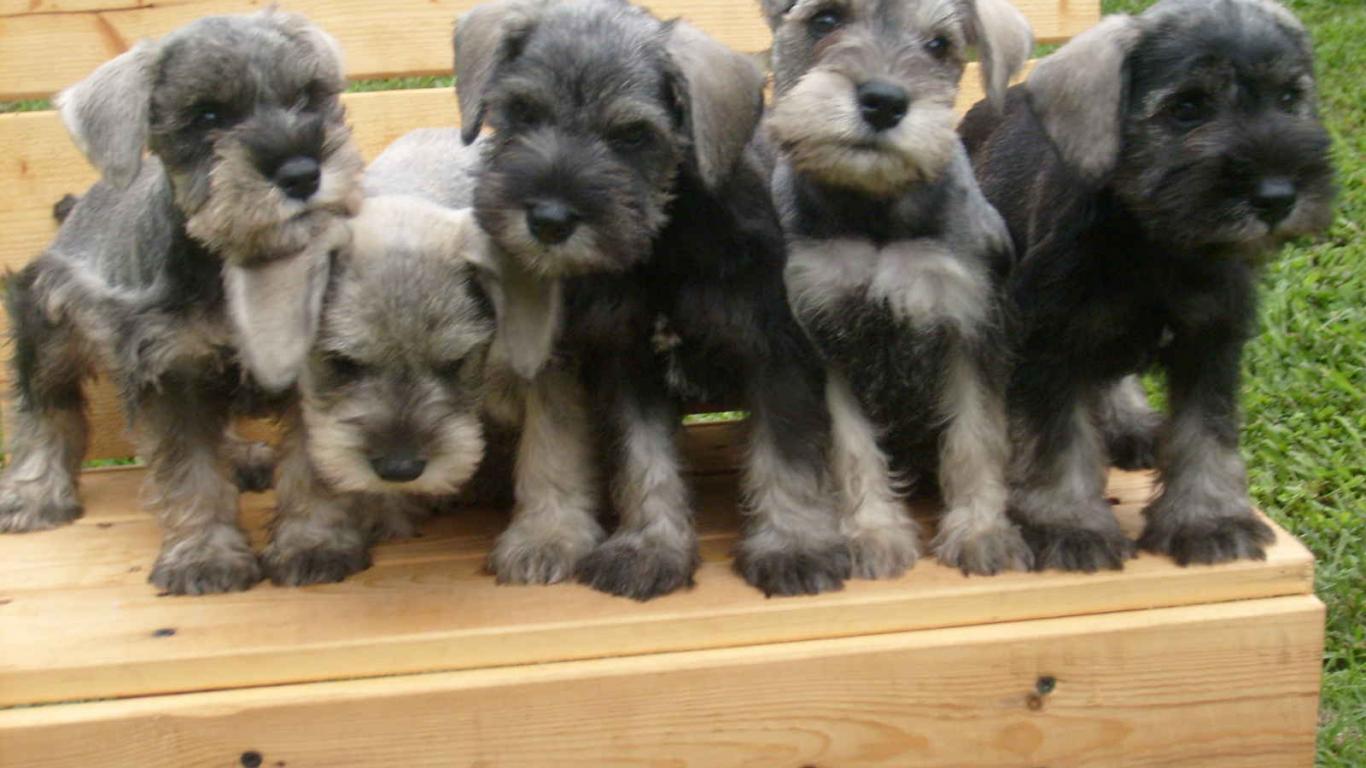 » Wallpaper Schnauzer puppies on a bench