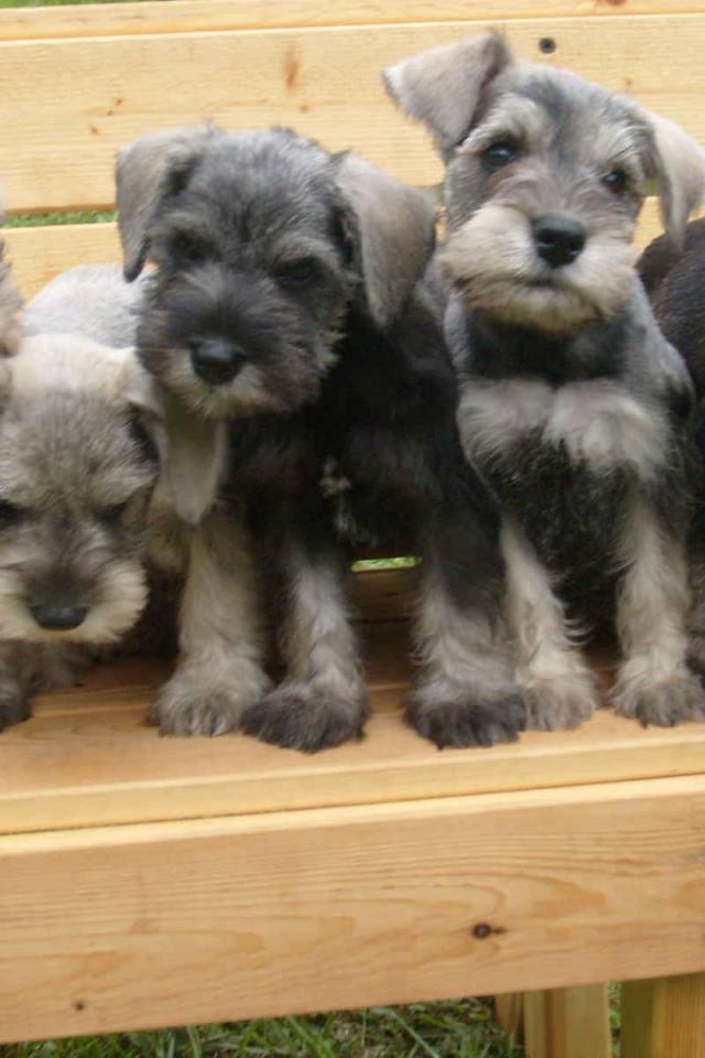 Wallpaper Schnauzer puppies on a bench