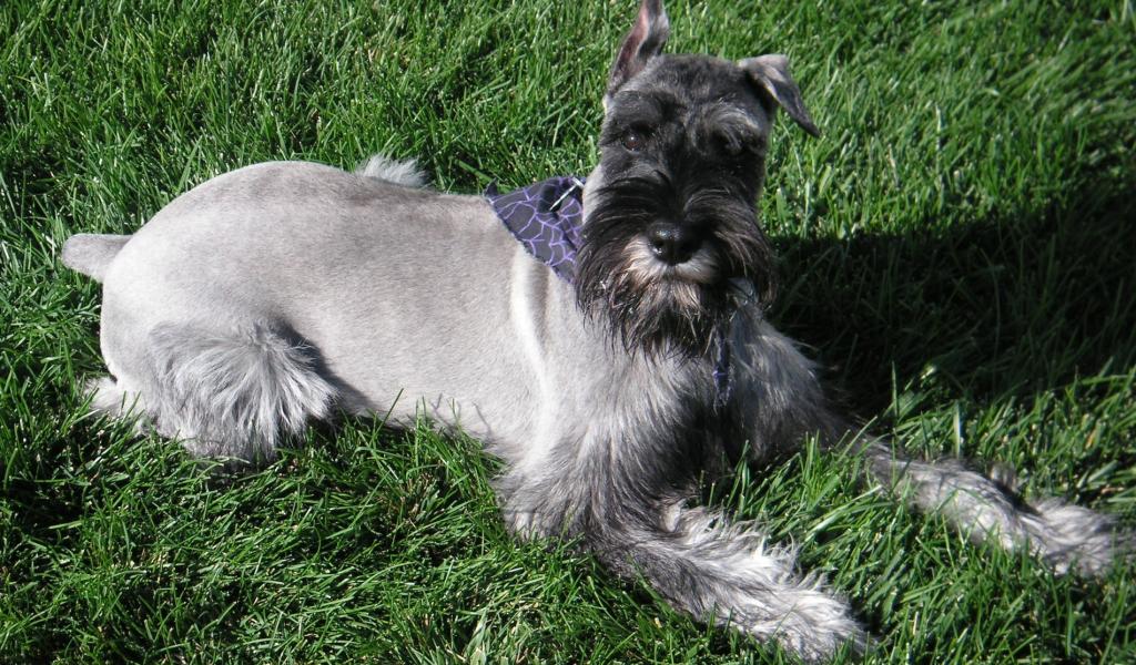 Wallpaper The nine-month schnauzer in the grass