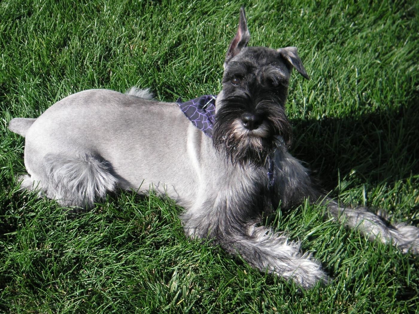 Wallpaper The nine-month schnauzer in the grass