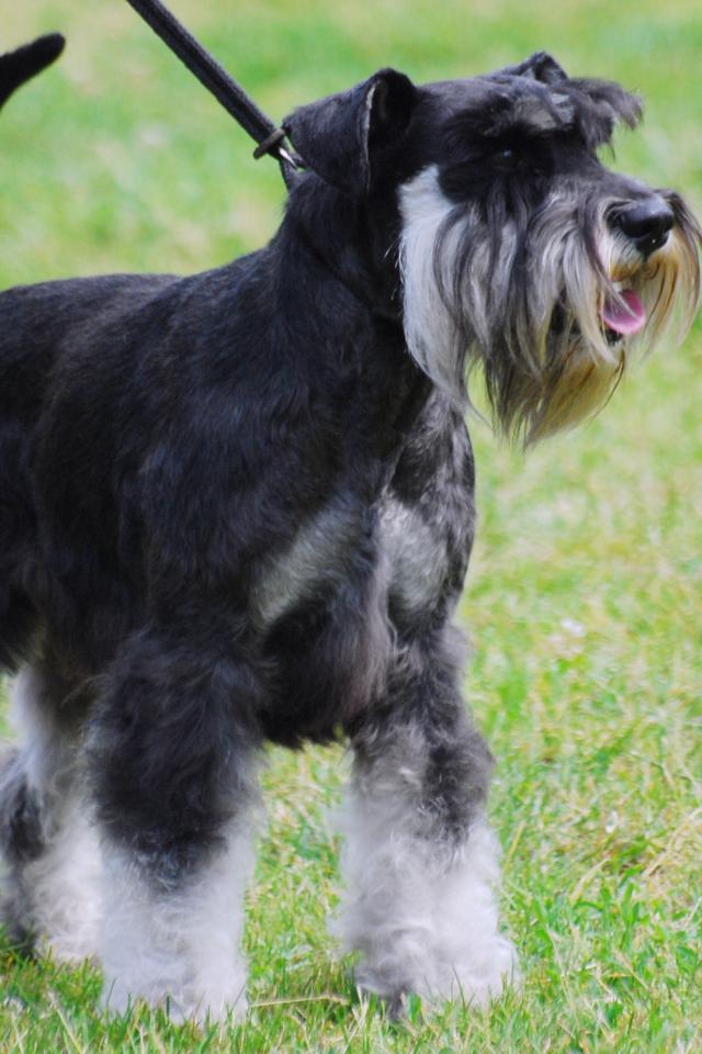 Wallpaper Miniature schnauzer on a leash