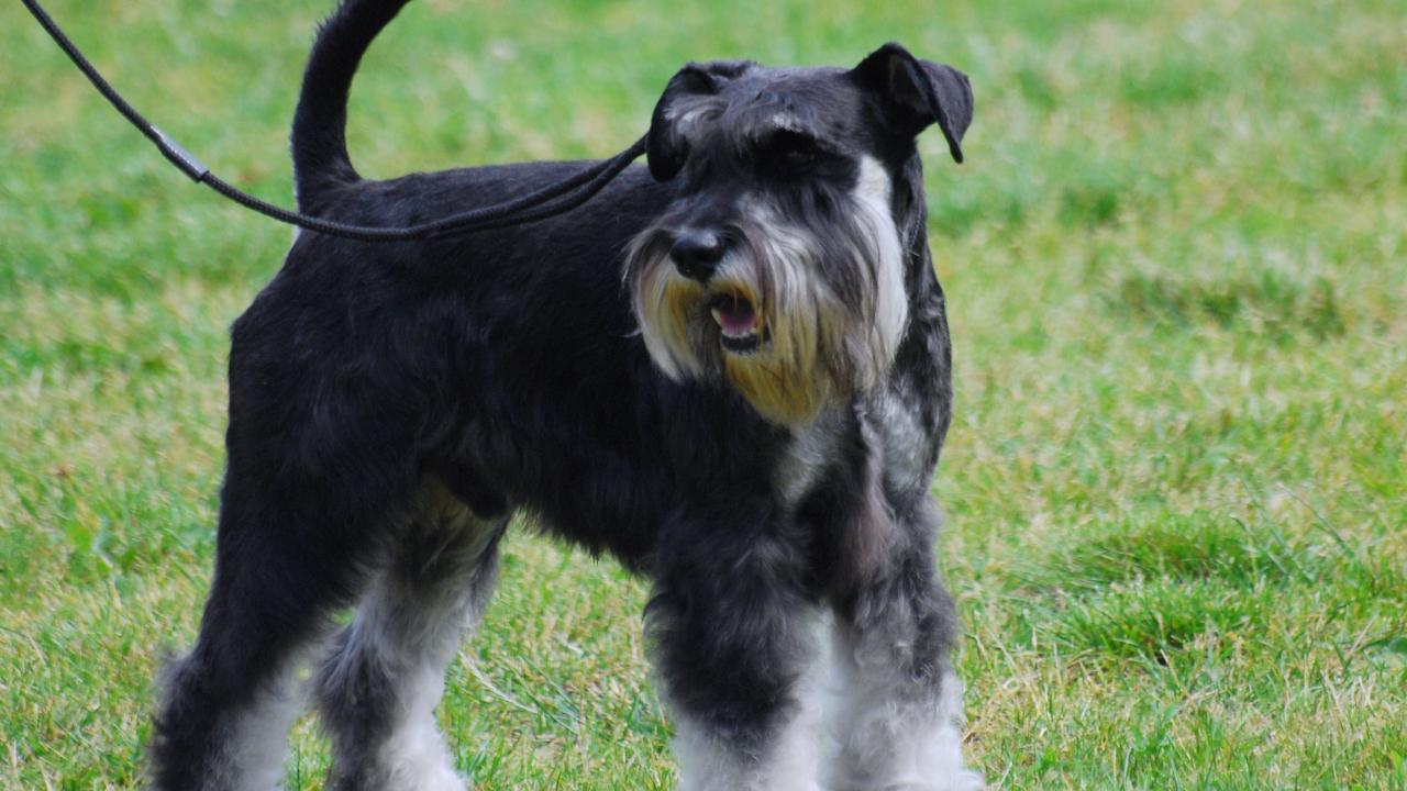 Wallpaper Miniature schnauzer on a leash