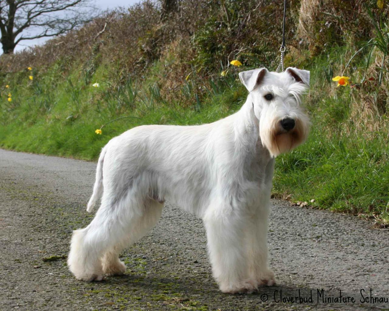 » Wallpaper White Schnauzer on the trail