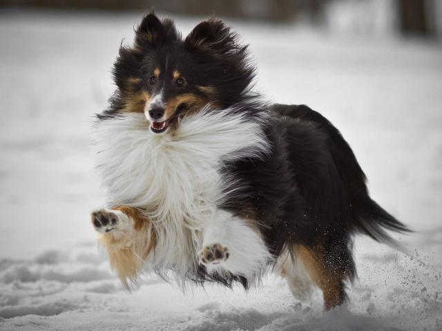Wallpaper Collie dog running on snow