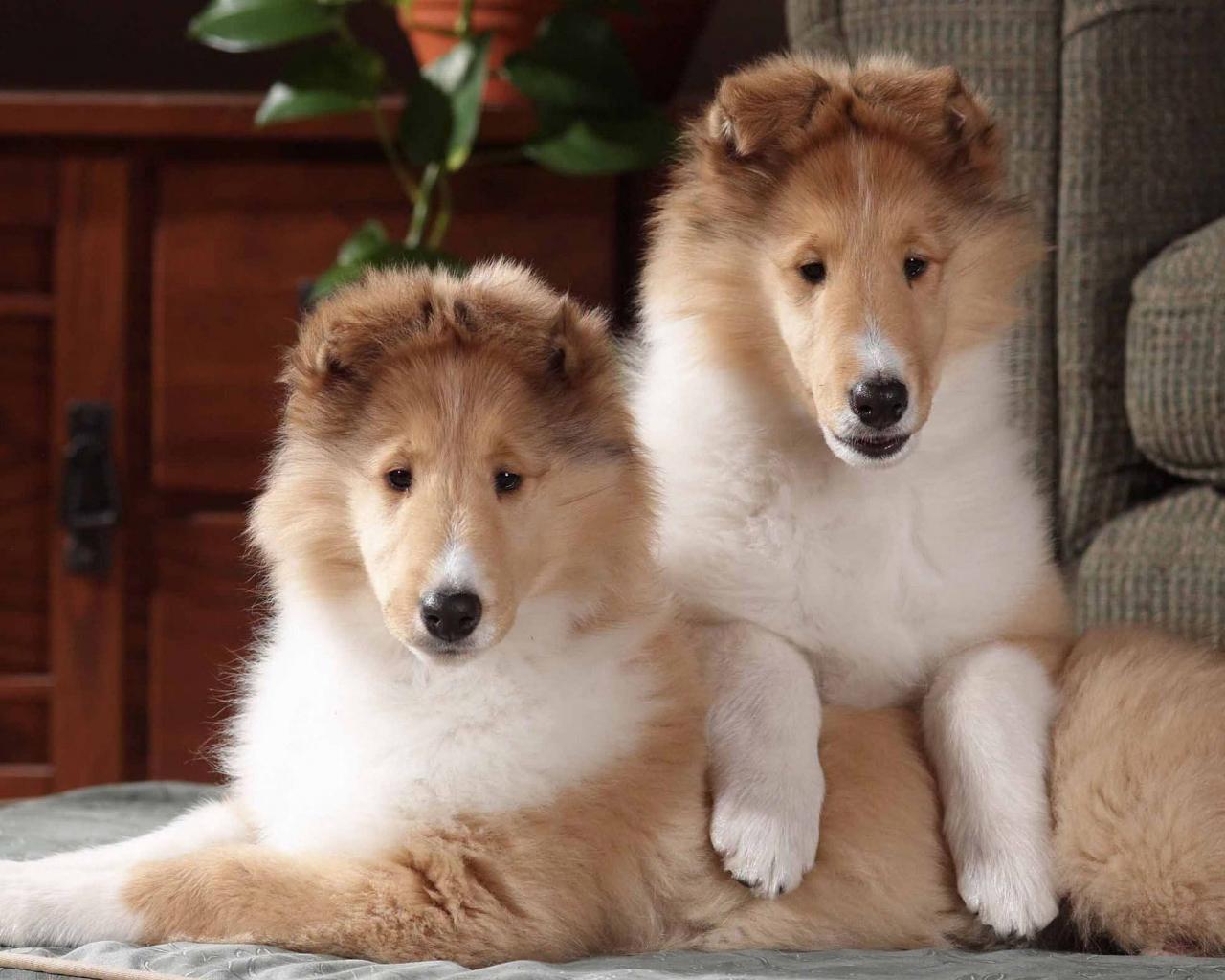 Wallpaper A pair of cute puppies collie