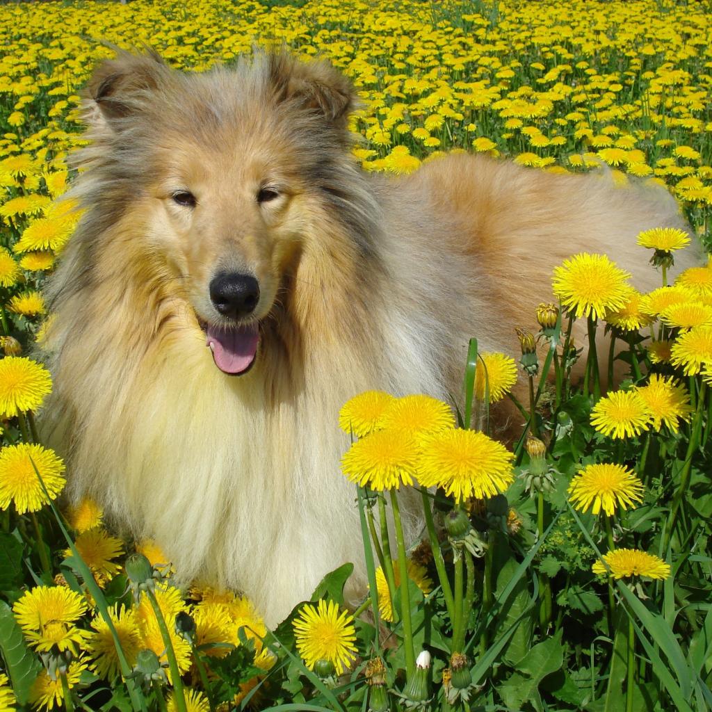 » Wallpaper Fluffy collie among dandelions
