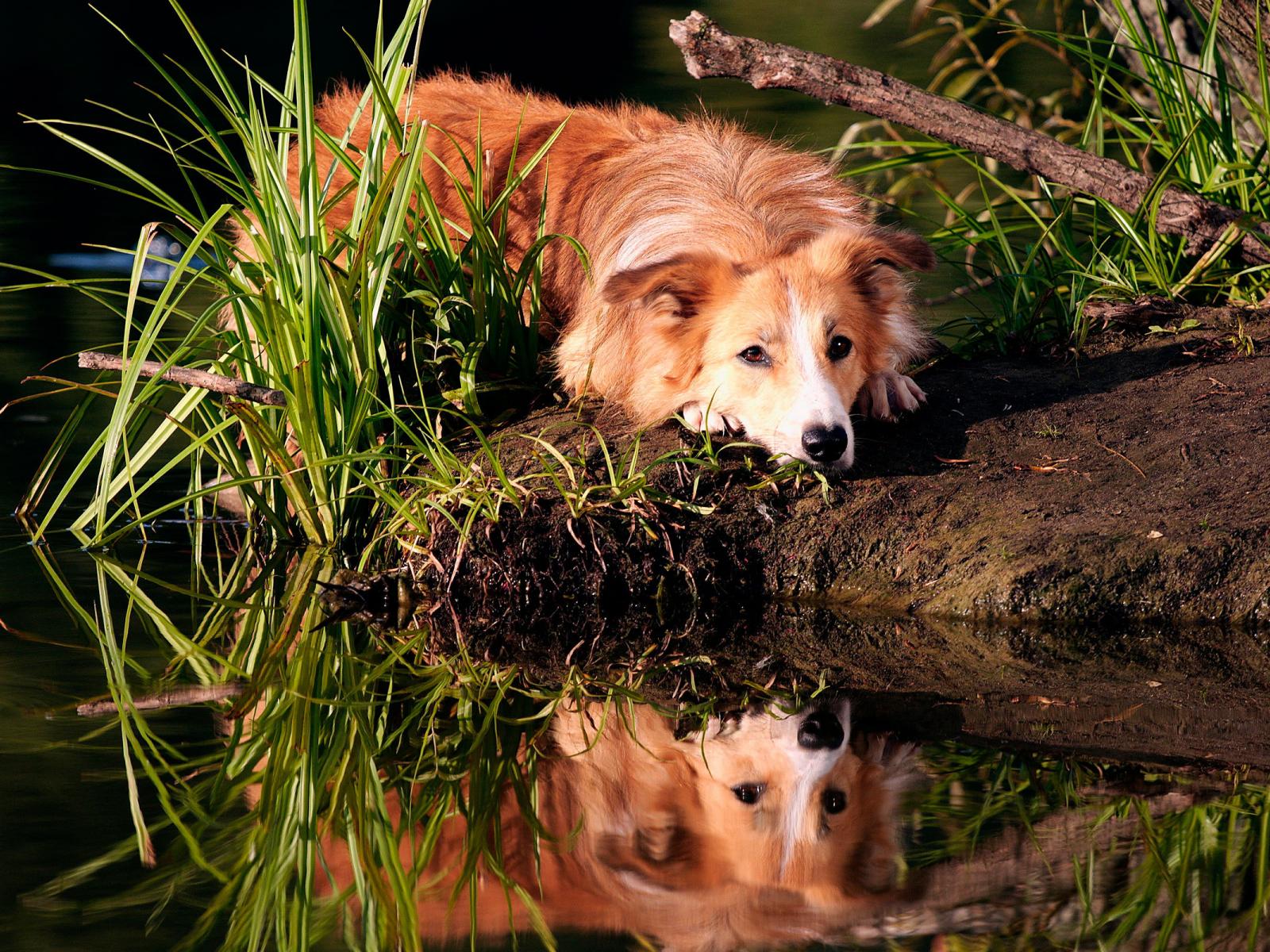 Wallpaper Redhead collie resting on the shore