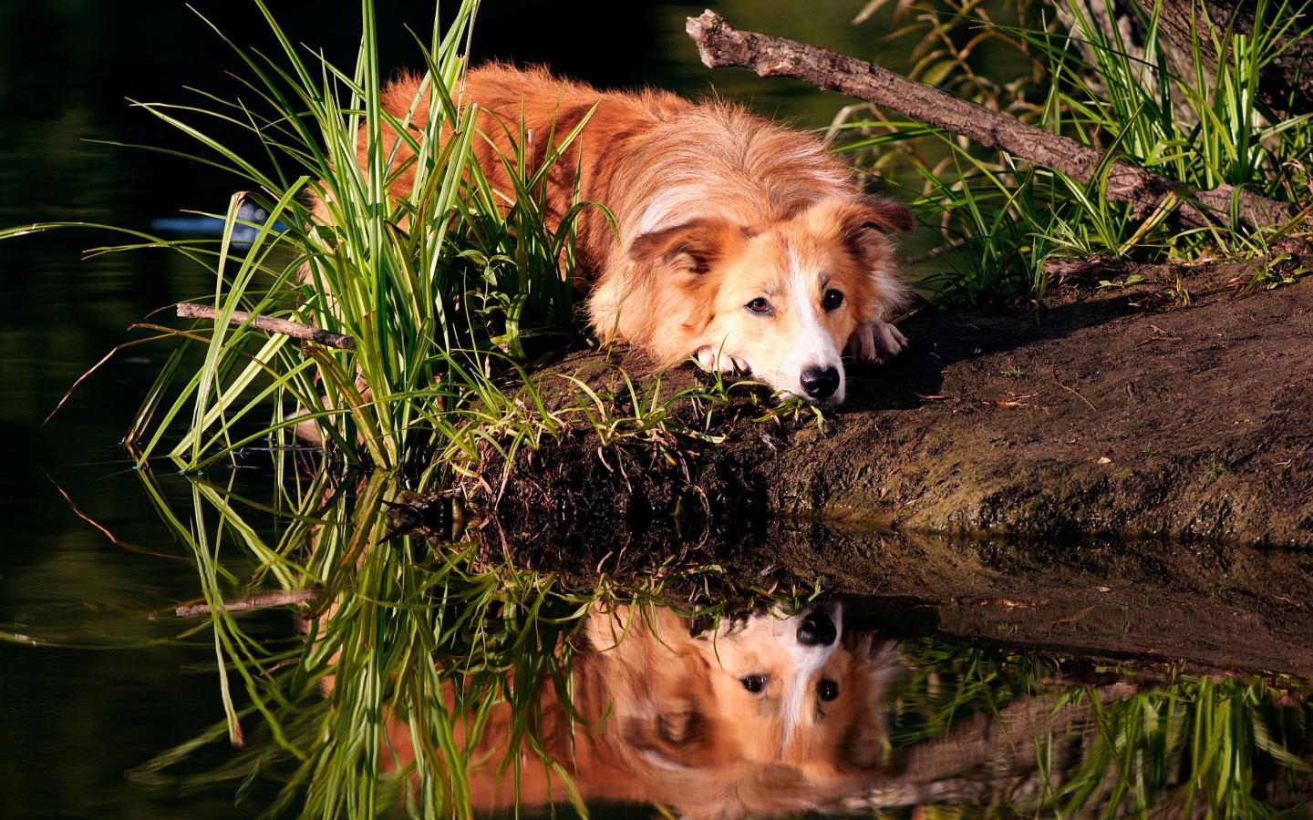 Wallpaper Redhead collie resting on the shore