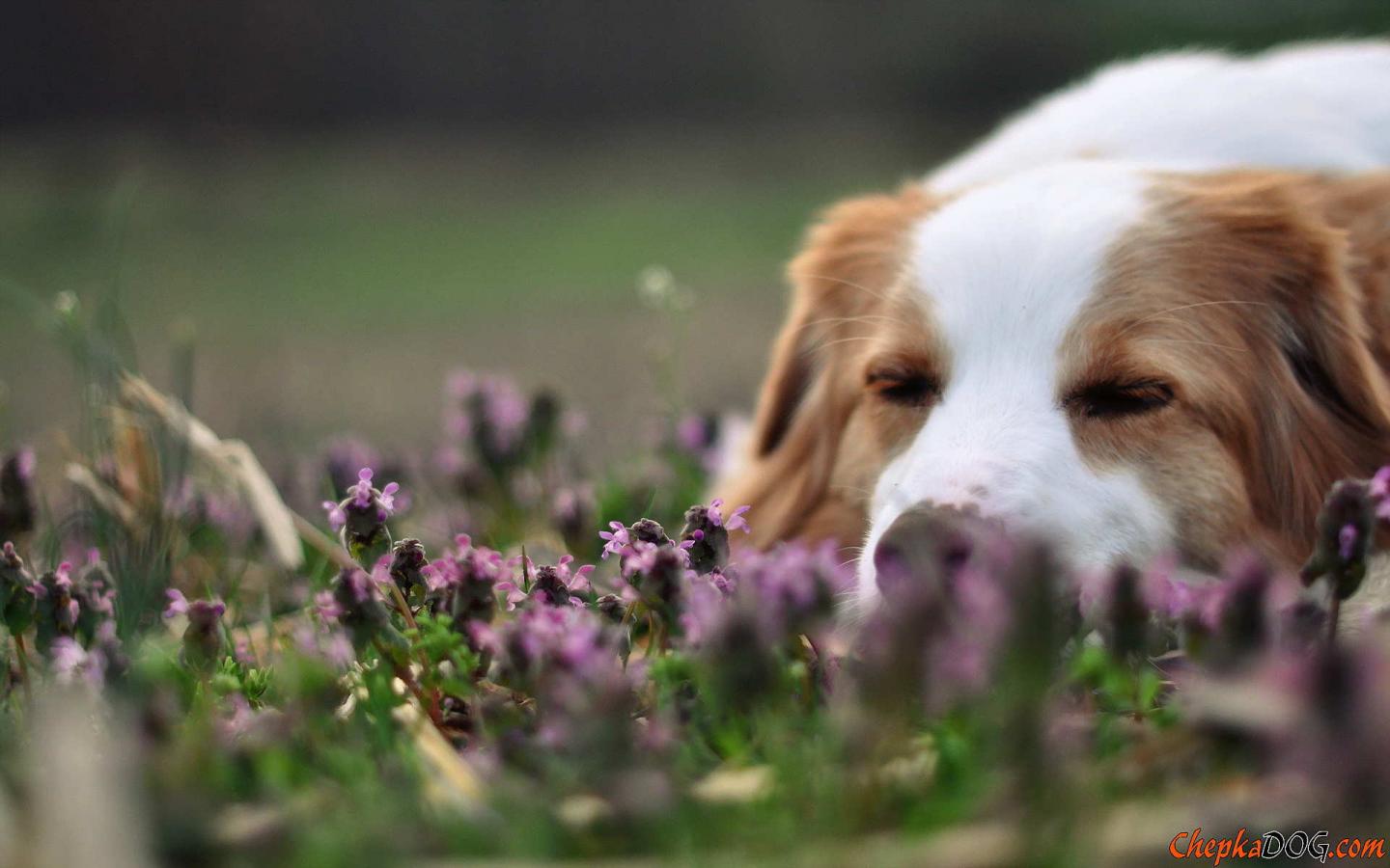 Wallpaper Collie sleeping in flowers