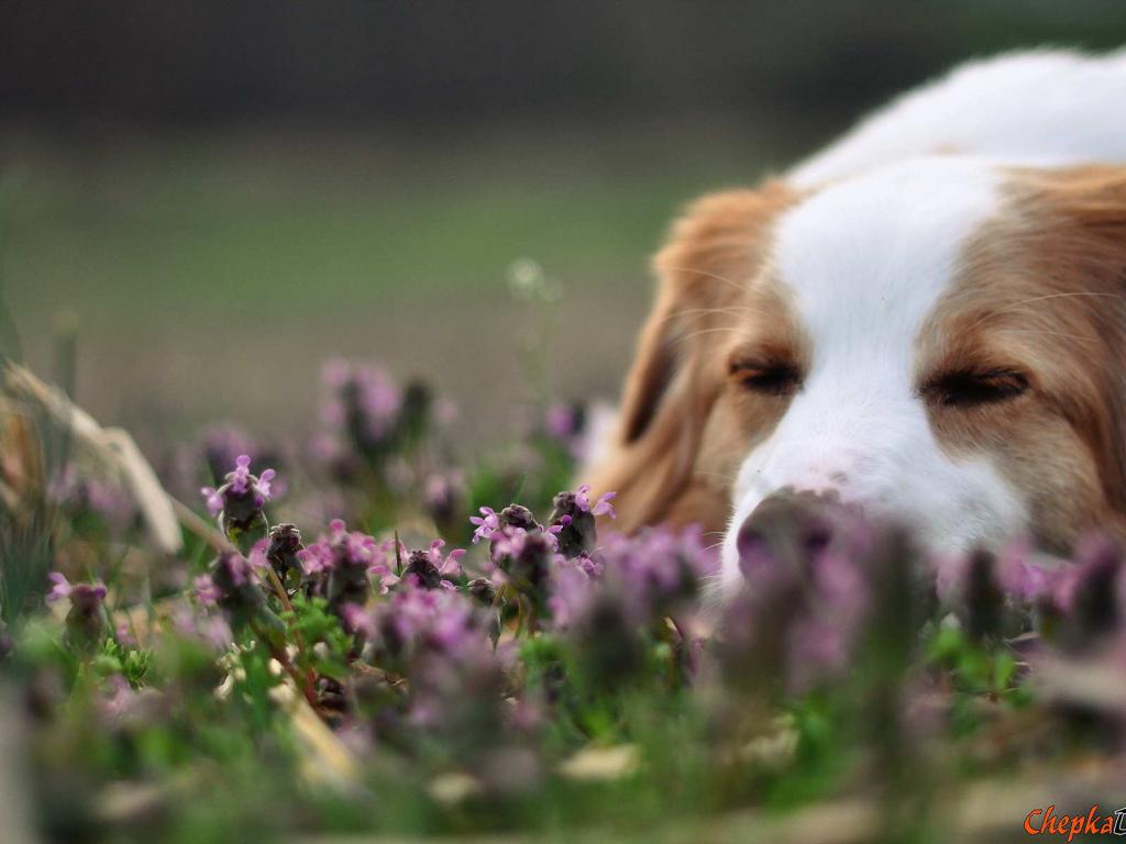 Wallpaper Collie sleeping in flowers