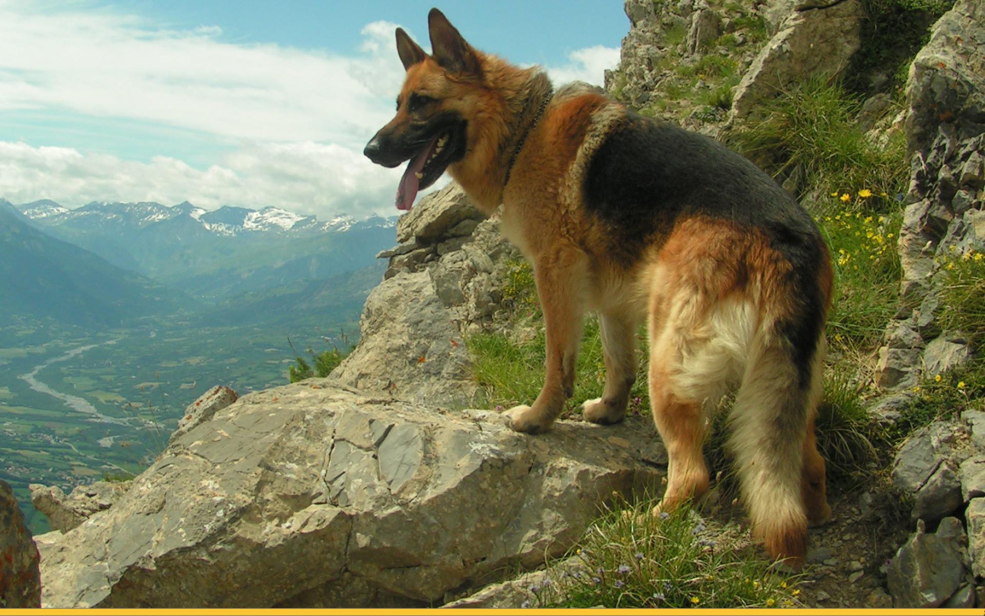 Wallpaper German shepherd among the rocks