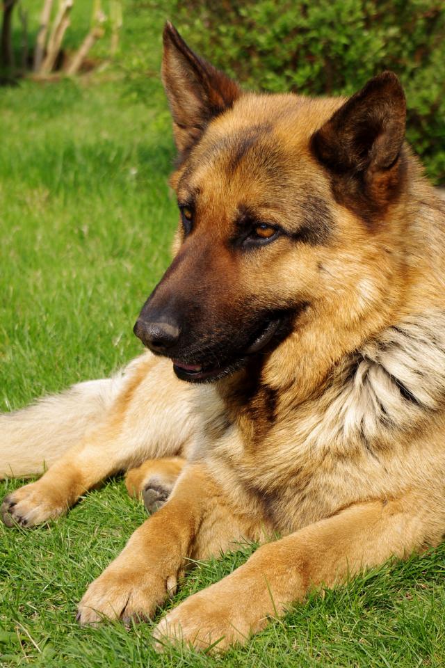 Wallpaper German Shepherd resting on the grass