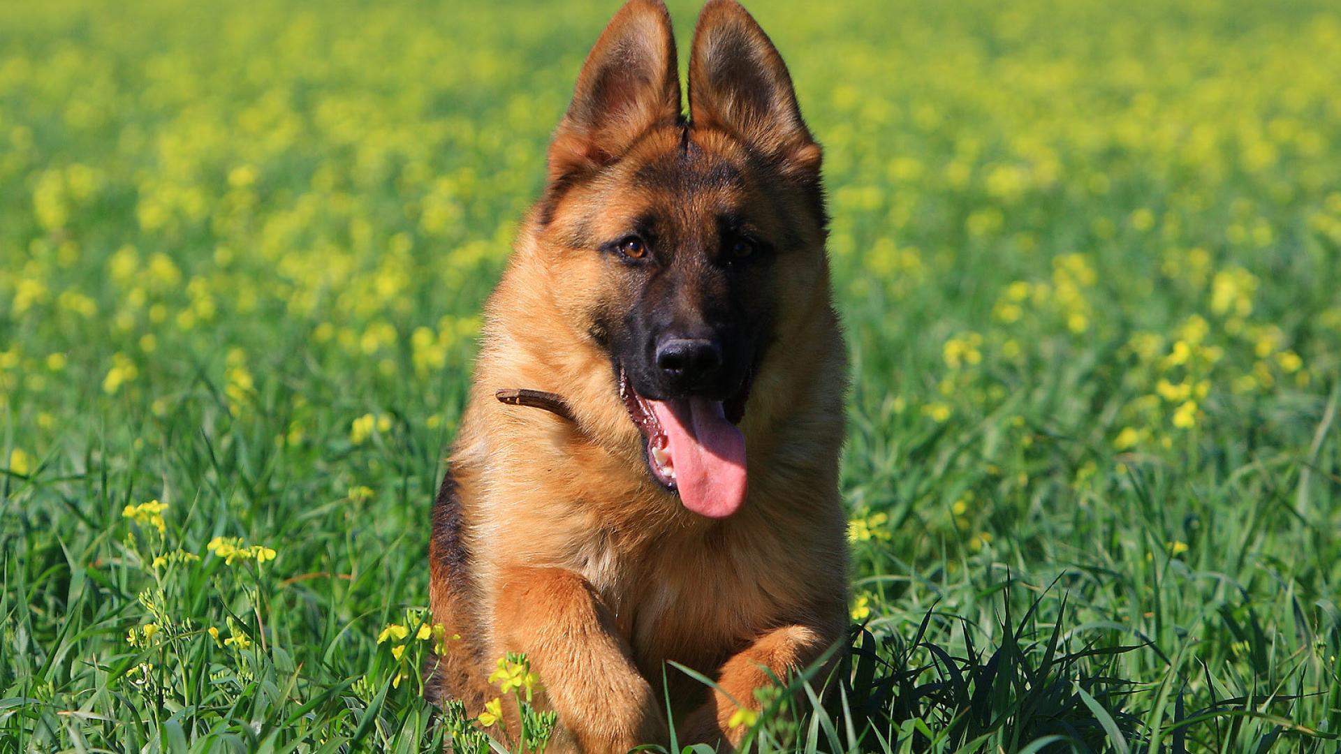 Wallpaper German Shepherd Dog running on the grass