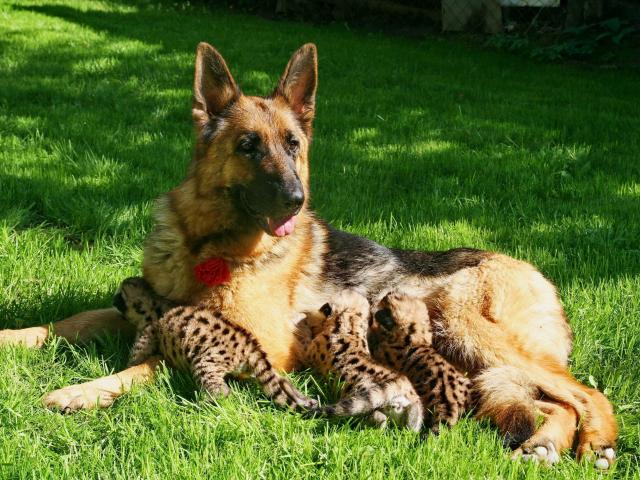 Wallpaper German shepherd feeding children leopard