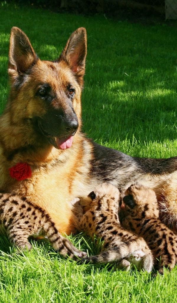 Wallpaper German shepherd feeding children leopard