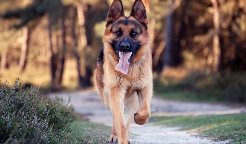 Wallpaper German Shepherd runs down the road
