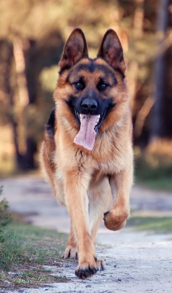 Wallpaper German Shepherd runs down the road