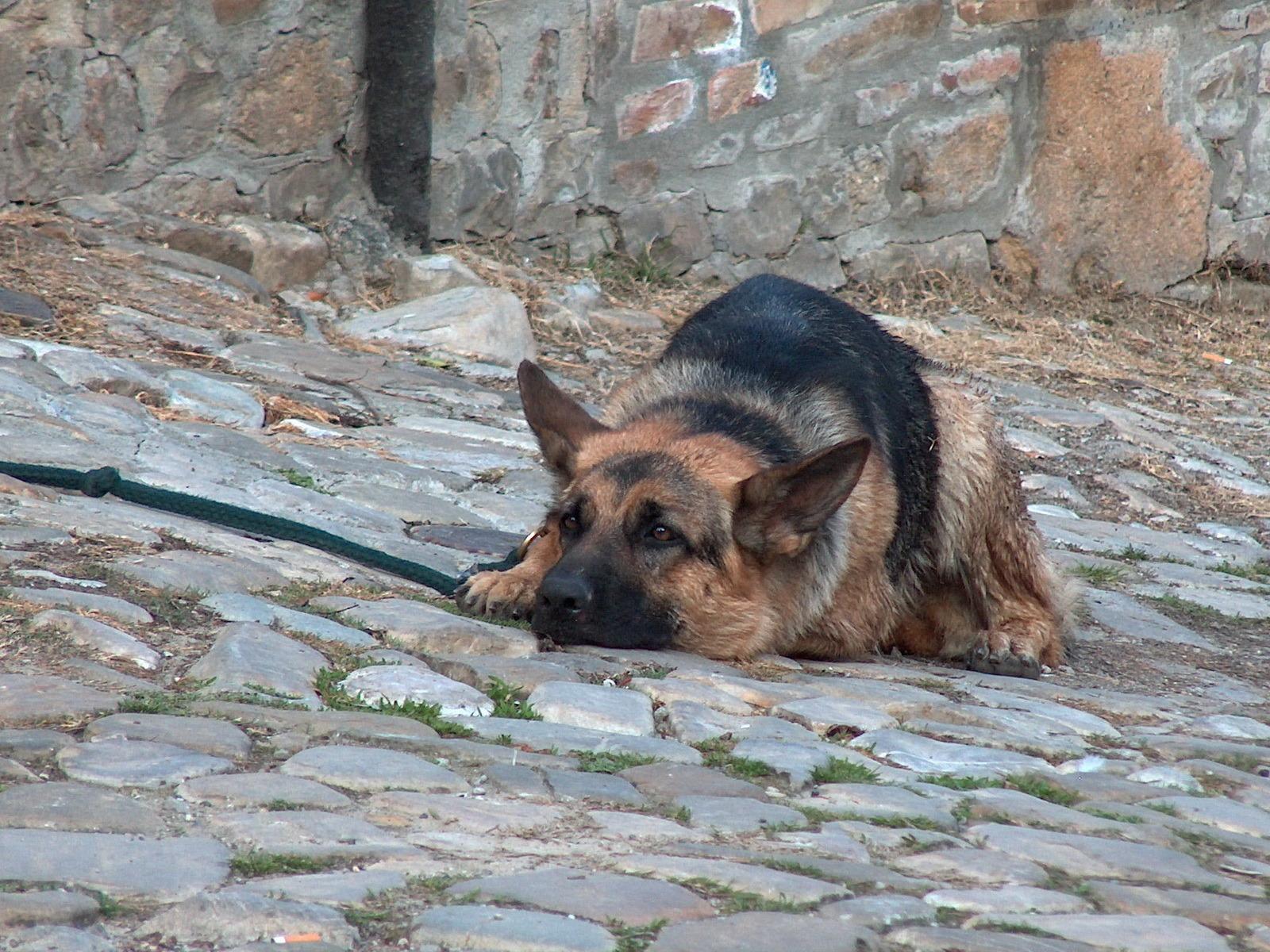 Wallpaper German shepherd lying in a cage