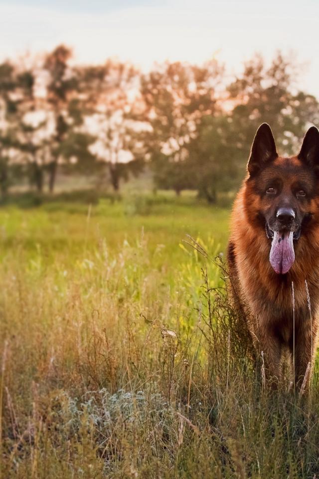 Wallpaper German Shepherd dog at sunset