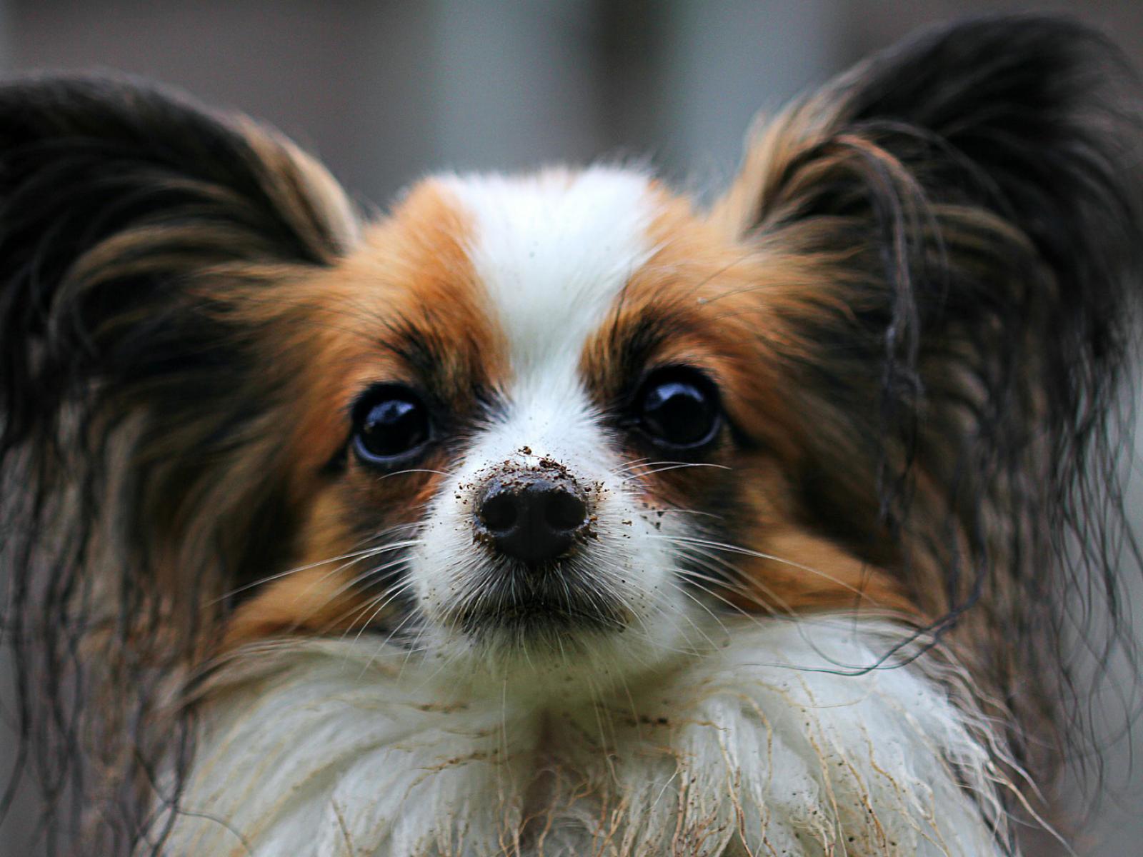 Wallpaper Papillon with a dirty nose