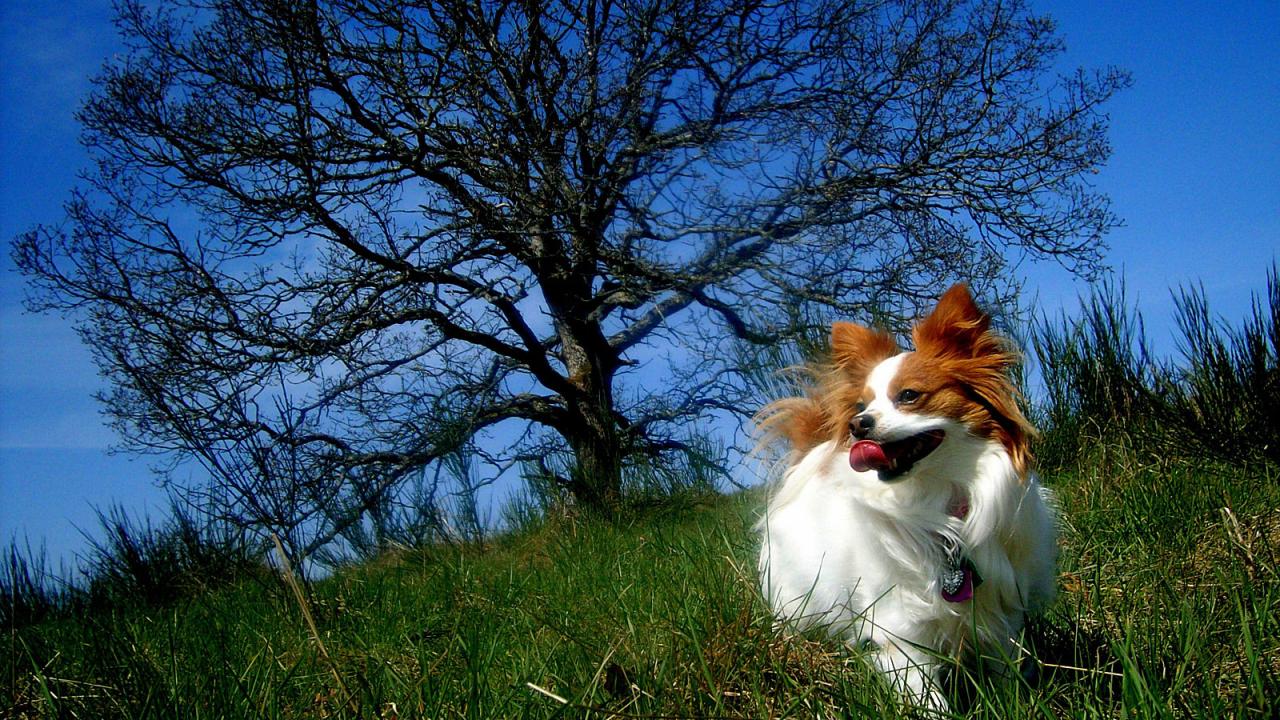 Wallpaper Papillon dog in training