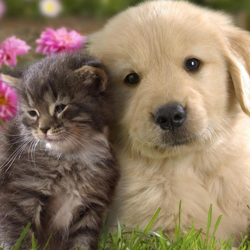 Wallpaper Retriever puppy with a kitten