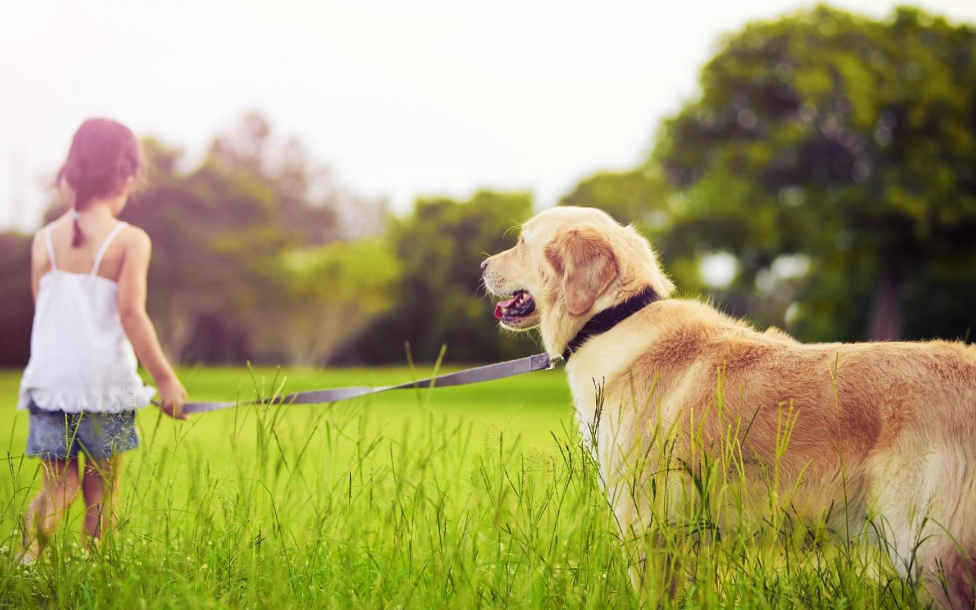 Wallpaper Girl with golden retriever