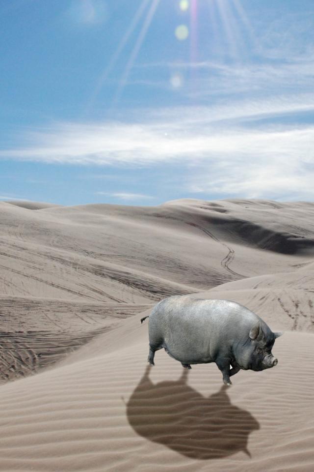Wallpaper Grey pig in the desert