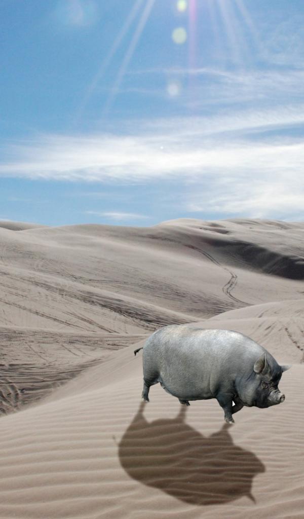 Wallpaper Grey pig in the desert
