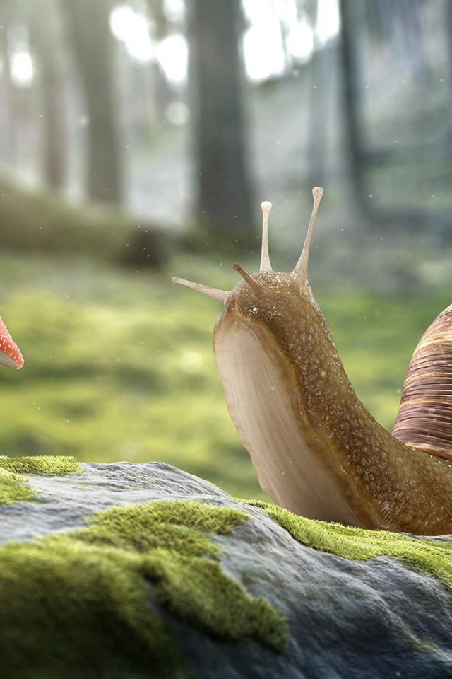 Wallpaper Snail on a stone and fly agaric