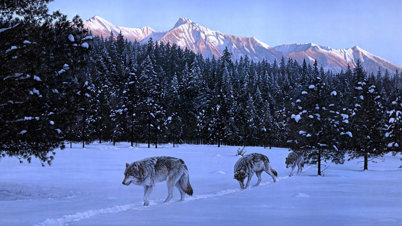 Wallpaper Three wolves went on the hunt