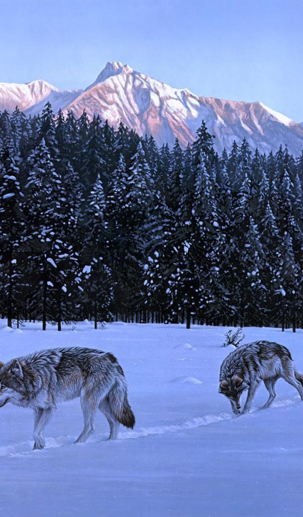 Wallpaper Three wolves went on the hunt