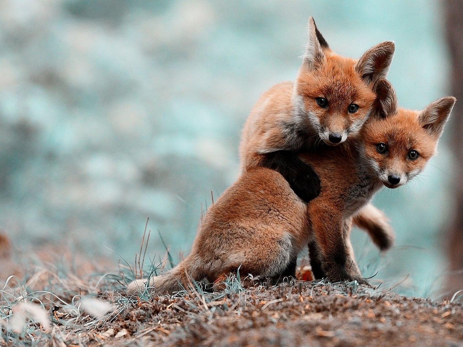 Wallpaper Two cute fox
