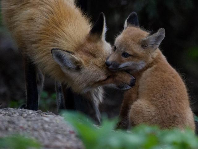 Wallpaper Fox caring for her cub