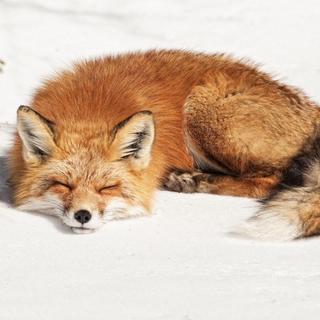 Wallpaper Fox sleeping sweetly on the white snow
