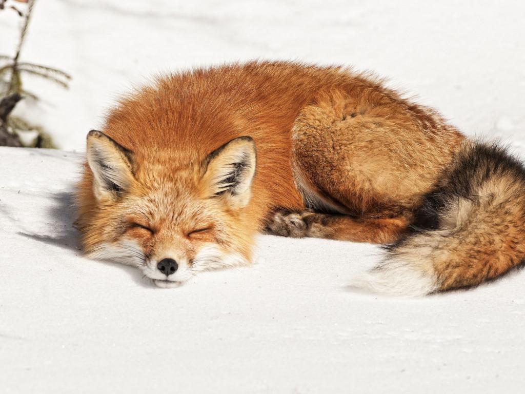 Wallpaper Fox sleeping sweetly on the white snow