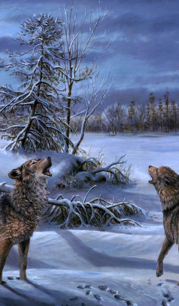 Wallpaper A pack of wolves howling at the moon