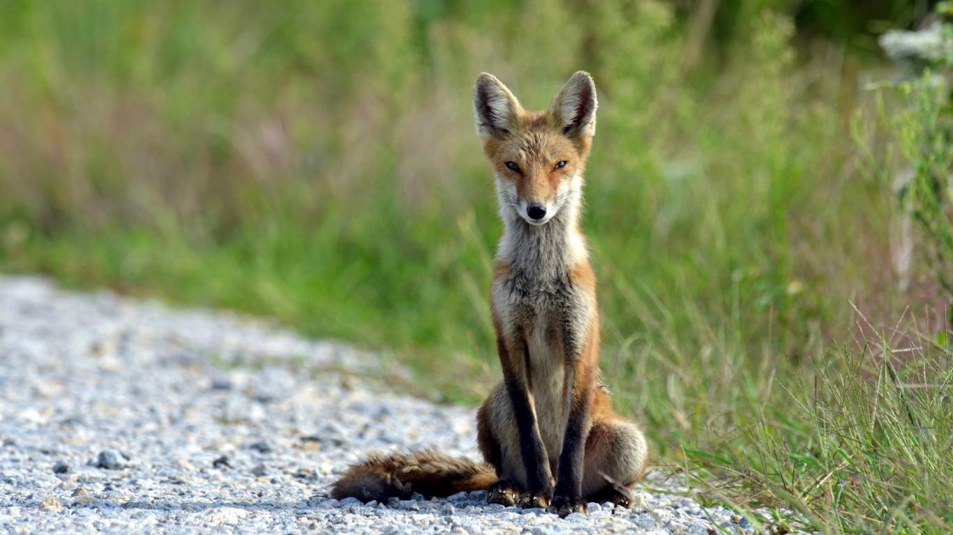 Wallpaper Skinny fox sits on the trail