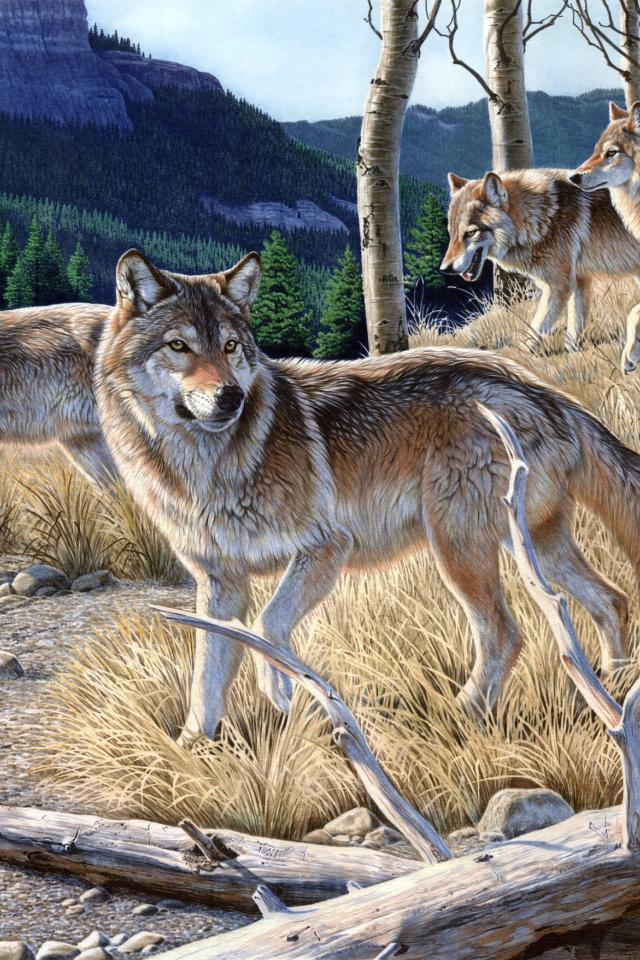 Wallpaper A pack of wolves in the woods